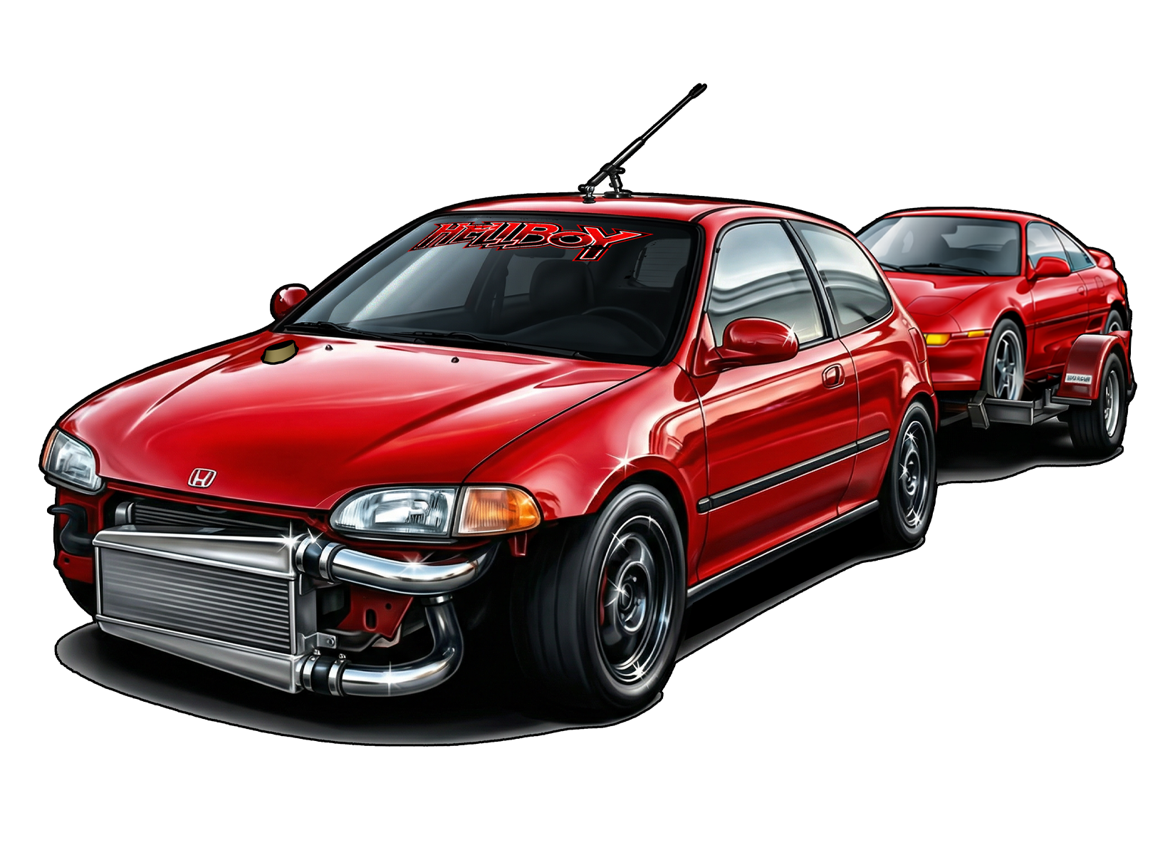 Hellboy pulling the mr2 sticker